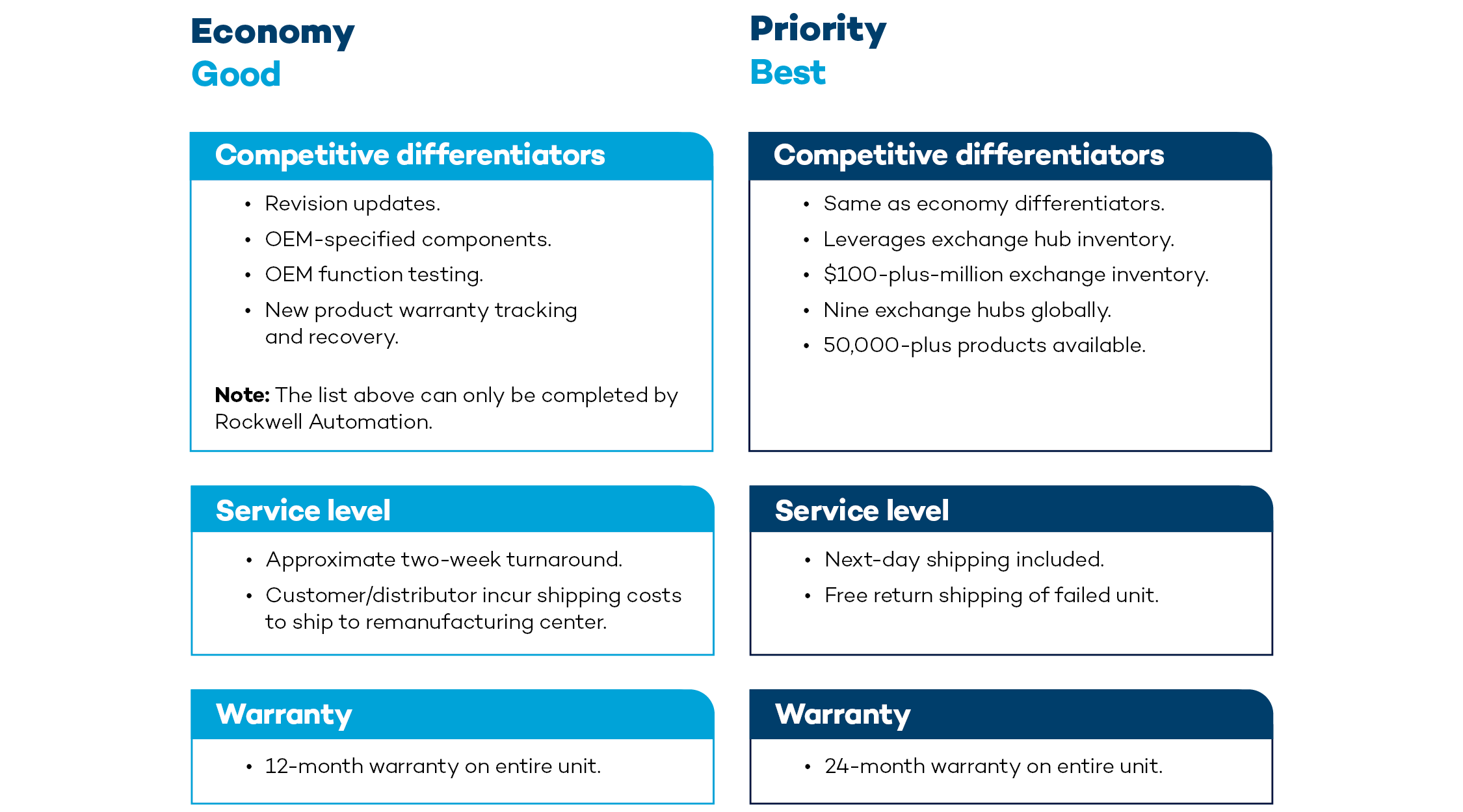 By leveraging Rockwell Automation’s ISO‑certified remanufacturing facilities and OEM repair processes, Border States gives customers access to the same high-quality parts, specifications and testing standards used in original manufacturing — ensuring consistent performance and dependable outcomes. These proven repair techniques help reduce unplanned downtime, improve equipment performance and extend product life, protecting your investment in automation assets.